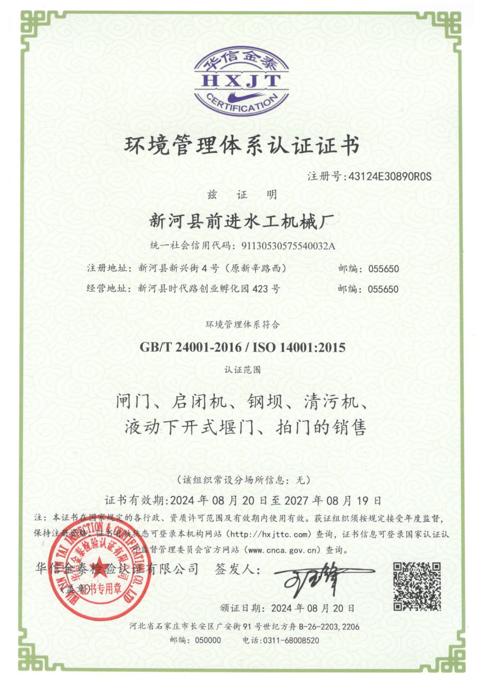 新河縣前進水工機械廠是一家專門從事水利工程設(shè)備研發(fā)生產(chǎn)的廠家,現(xiàn)有員工228人,各類高、中級專業(yè)工程技術(shù)人員近30人,技術(shù)生產(chǎn)工人180多人。公司占地面積14674平方米。公司擁有車、鉗、刨、銑、冷作、鈑金、鑄造等,工種齊全,加工能力和技術(shù)力量雄厚,并具備理化測試手段與儀器設(shè)備。前進水工專注景觀閘門,鋼壩,合頁壩,液壓升降壩,液壓閘門,臥倒門,一字門,人字門,液壓啟閉機,卷揚啟閉機,螺桿啟閉機,清污機,除污機,閘門,拍門等設(shè)備的研發(fā)與生產(chǎn),是新河水利工程產(chǎn)品行業(yè)的領(lǐng)跑者,不僅在同行業(yè)群中揭起了一次又一次的技術(shù)革新,更為水利工程企業(yè)提供了更高更大的選擇平臺。